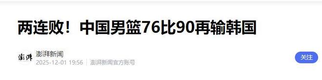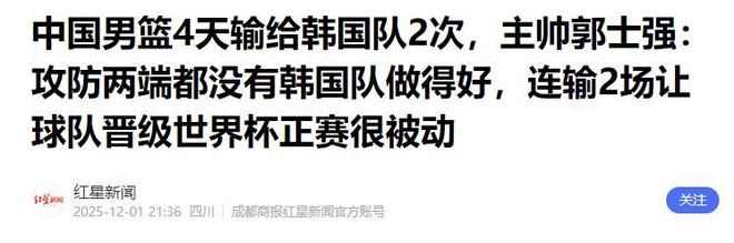 在11月28日的首场比赛中,中国男篮是落后4分败给韩国男篮,本来以为首场失利只是因为队伍还没调整好,但让人没想到的是,第二场暴露出来的问题更多。